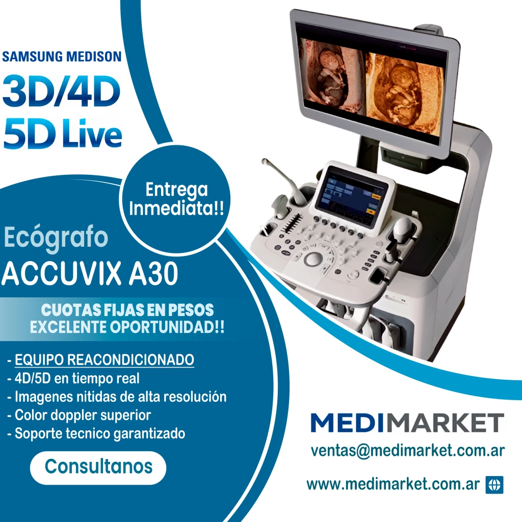 El Samsung Medison Accuvix A30 es un sistema de ultrasonido de consola de gama alta diseñado para ofrecer una experiencia de diagnóstico superior. Este equipo representa la cúspide de la tecnología de Samsung, enfocándose en la excelencia de la imagen 4D y la automatización inteligente.