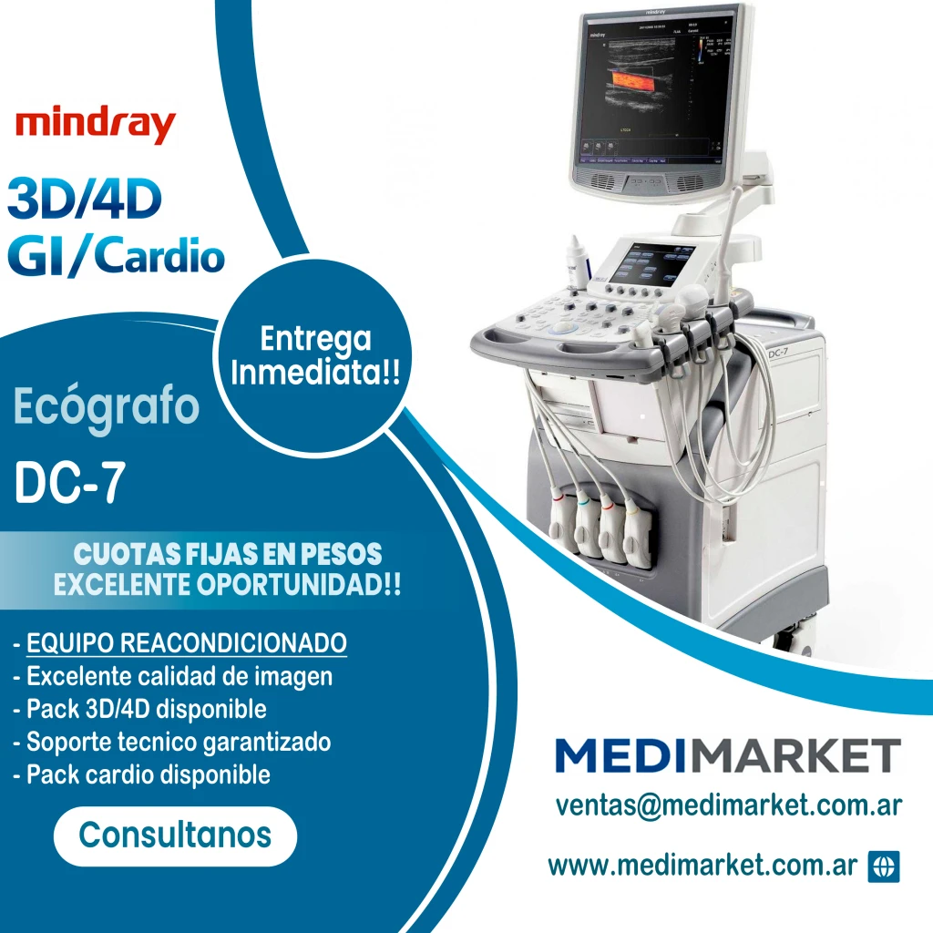 El Mindray DC-7 es un sistema de ecografía Doppler color de consola que ofrece un equilibrio excepcional entre rendimiento de imagen y versatilidad clínica. Este equipo es ideal para clínicas y hospitales que requieren una solución robusta y confiable para múltiples especialidades.